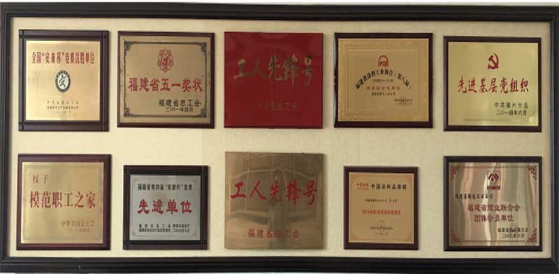 五十多年來,公司長(zhǎng)期致力于涂料(油漆)領(lǐng)域的生產(chǎn)與發(fā)展經(jīng)營(yíng),主營(yíng)“龍江牌”“瑞龍牌”系列工業(yè)涂料產(chǎn)品,公司通過 ISO9001 質(zhì)量管理體系、ISO14001 環(huán)境管理體系和 OHSAS45001 職業(yè)健康安全管理體系認(rèn)證,相關(guān)產(chǎn)品也通過 CCC 強(qiáng)制性產(chǎn)品安全認(rèn)證。公司連續(xù)多年獲“龍海市年度納稅大戶”“龍海市年度經(jīng)濟(jì)建設(shè)貢獻(xiàn)獎(jiǎng)”等榮譽(yù)。建廠至今未發(fā)生安全生產(chǎn)事故,多次被評(píng)為全國(guó)“安康杯”競(jìng)賽優(yōu)勝單位。現(xiàn)已成為福建省涂料行業(yè)的骨干企業(yè),為地方經(jīng)濟(jì)發(fā)展與就業(yè)穩(wěn)定作出了積極貢獻(xiàn),具有良好的發(fā)展前景。